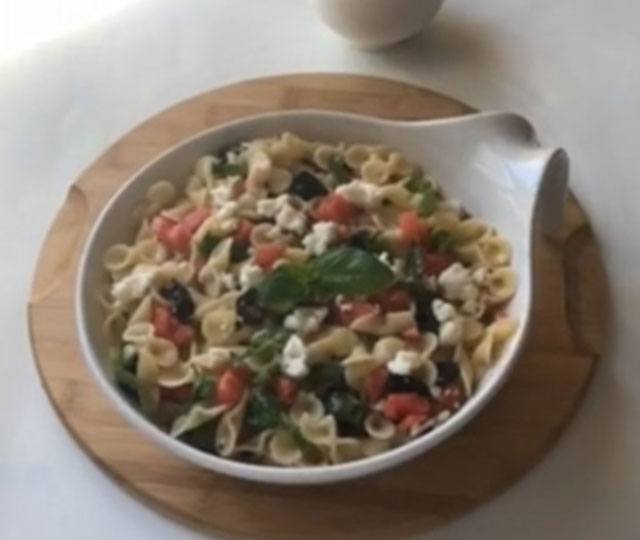 - Makarnayı 8 dakika kadar haşlayın ve süzdükten sonra zeytinyağ ile karıştırın. Ardından diğer malzemelerle harmanlayıp servis edin.Afiyet olsun...