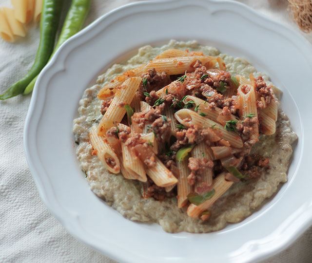 - Önce kuru soğanı, yeşil biber ve kıymayı en son domates püresi ve karabiberi ekleyerek kavurun. Bir kase içerisinde tahin ve limon suyunu karıştırın. Daha sonra sırayla közlendiğiniz patlıcanları, sarımsağı, karabiberi, yoğurdu ve zeytinyağını ekleyerek karıştırmaya devam edin. Tuz eklediğiniz suya Filiz kalem makarnayı ekleyerek 8 dakika kadar pişirin.Piştikten sonra süzün ve hazırladığınız karışıma makarnaları ekleyerek karıştırmaya devam edin. Tabağa aldığınız makarnaya Tahinli patlıcanlı kıymalı harcı ekleyerek servis edin. Afiyet olsun...